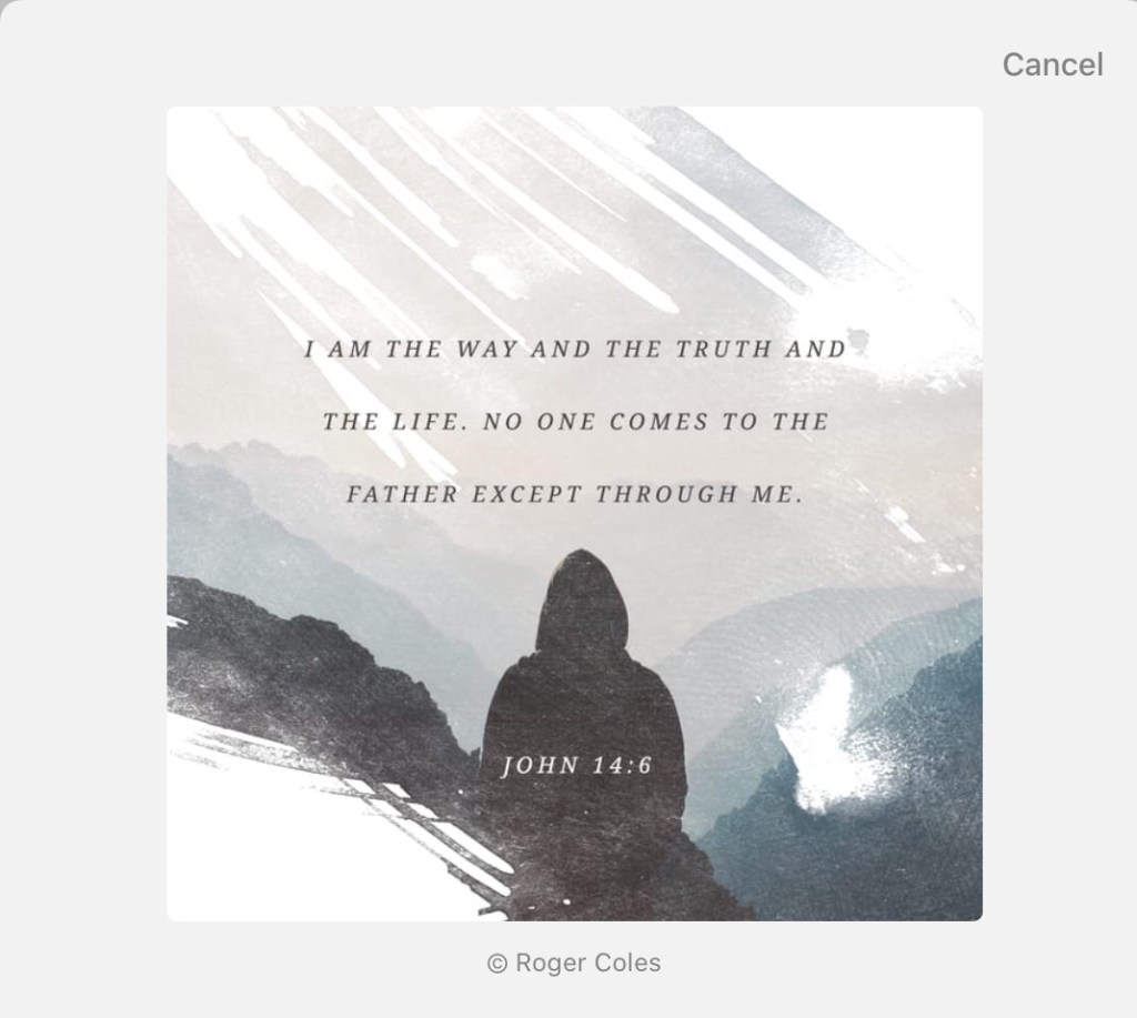 “Jesus answered, “I am the way and the truth and the life. No one comes to the Father except through me.”