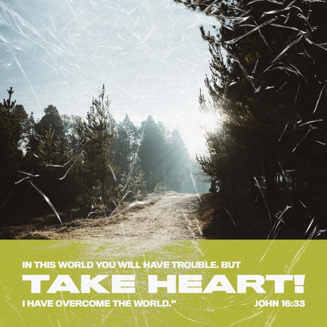 “I have told you these things, so that in Me you may have [perfect] peace. In the world you have tribulation and distress and suffering, but be courageous [be confident, be undaunted, be filled with joy]; I have overcome the world.” [My conquest is accomplished, My victory abiding.]”
