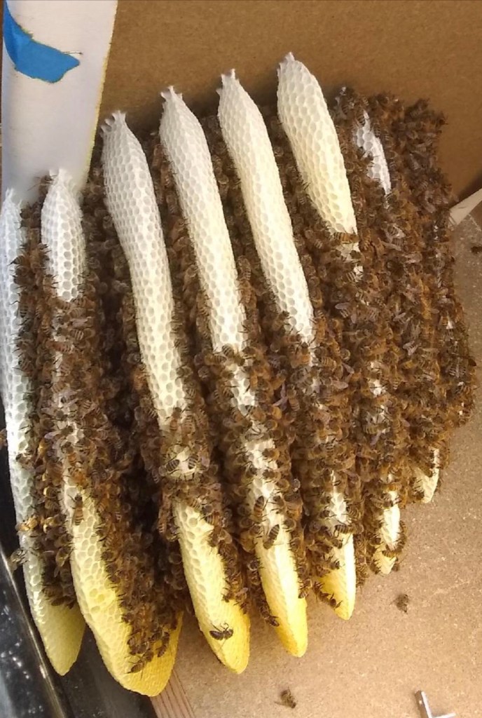 My wife and I plus our 6 year old daughter were having a relaxing day today when the phone rang. A man on the other end had a situation on his hands and needed our help. He needed to take one of his trailers to the dump when he heard a lot of buzzing. Not thinking, he grabbed a can of wasp killer and started to spray the flying insects. Once he noticed that they were not wasps but honey bees he stopped and called me to come remove them. Upon arrival he showed us where the bees were going in. It was a rather large cabinet too big to remove from the trailer so we had to work around it. We had a chance to show some of his relatives that were there making it educational and fun. We were able to remove the bees and the honey comb safely and quickly while having fun in the process. Praise God we were able to help and show kindness and help out on this beautiful Sabbath day. God isn’t asking us to go to church and return home only to sit there all day. We are to go out and do good for others by showing his love. Luke 6:6-11