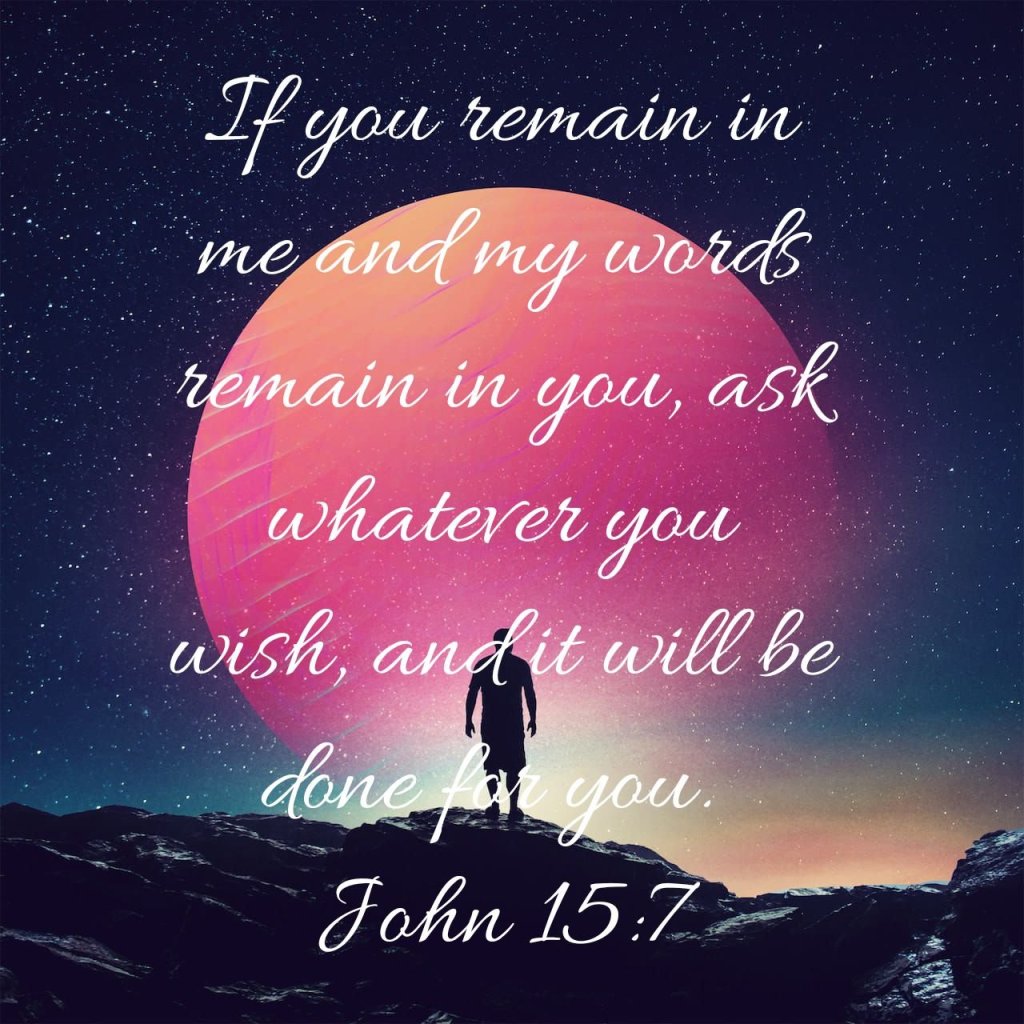 If you remain in me and my words remain in you, ask whatever you wish, and it will be done for you. John 15:7 NIV https://john.bible/john-15-7