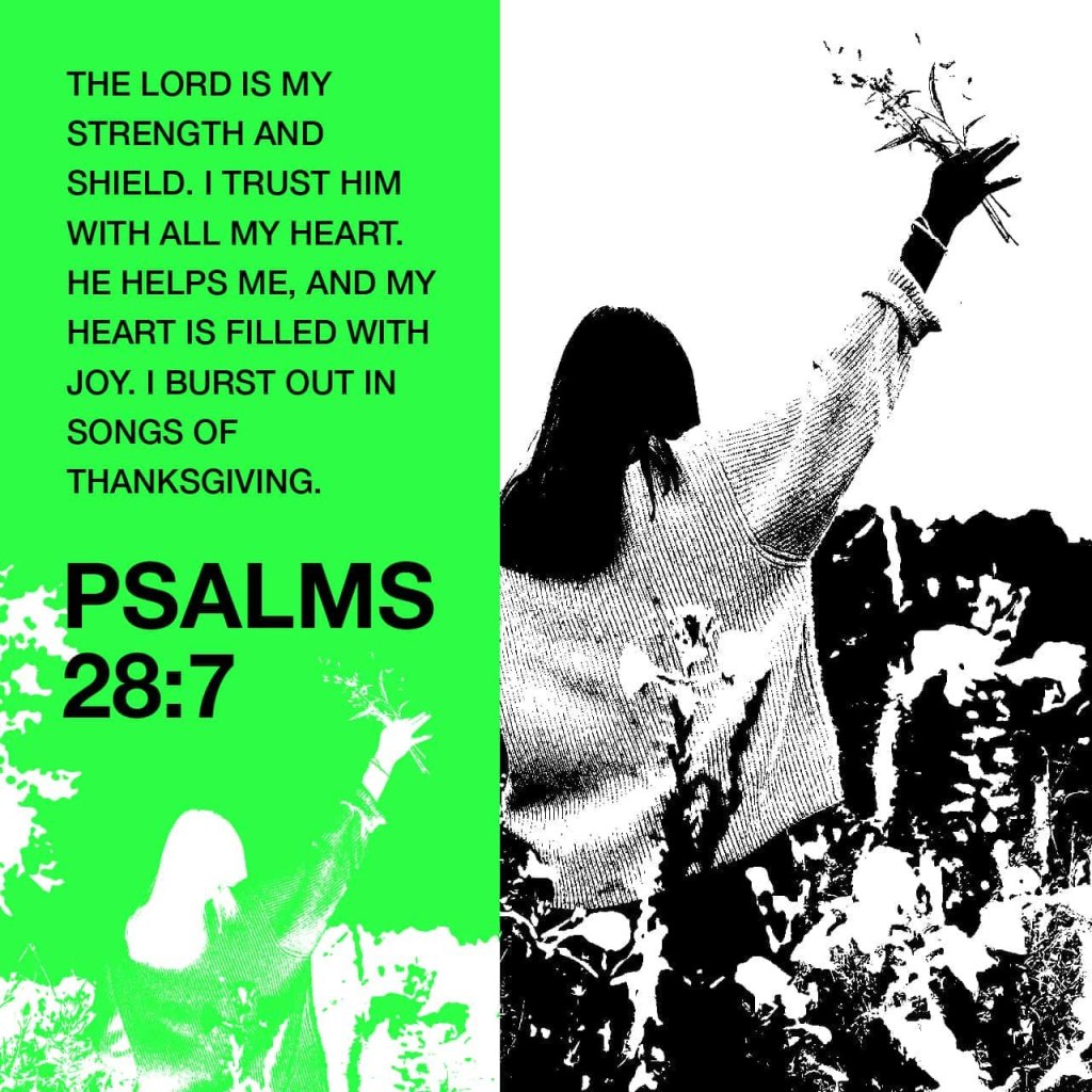 The Lord is my strength and my shield; my heart trusts in him, and he helps me. My heart leaps for joy, and with my song I praise him. Psalms 28:7 NIV https://psalm.bible/psalm-28-7