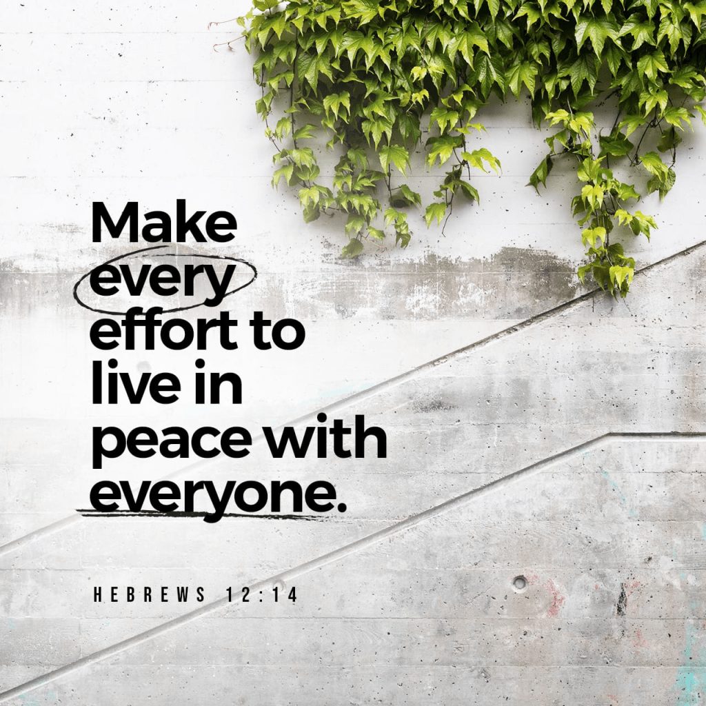 “Work at getting along with each other and with God. Otherwise you’ll never get so much as a glimpse of God. Make sure no one gets left out of God’s generosity. Keep a sharp eye out for weeds of bitter discontent. A thistle or two gone to seed can ruin a whole garden in no time. Watch out for the Esau syndrome: trading away God’s lifelong gift in order to satisfy a short-term appetite. You well know how Esau later regretted that impulsive act and wanted God’s blessing—but by then it was too late, tears or no tears.”