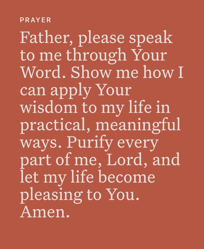“How can a young person live a clean life? By carefully reading the map of your Word. I’m single-minded in pursuit of you; don’t let me miss the road signs you’ve posted. I’ve banked your promises in the vault of my heart so I won’t sin myself bankrupt. Be blessed, GOD; train me in your ways of wise living. I’ll transfer to my lips all the counsel that comes from your mouth; I delight far more in what you tell me about living than in gathering a pile of riches. I ponder every morsel of wisdom from you, I attentively watch how you’ve done it. I relish everything you’ve told me of life, I won’t forget a word of it.”