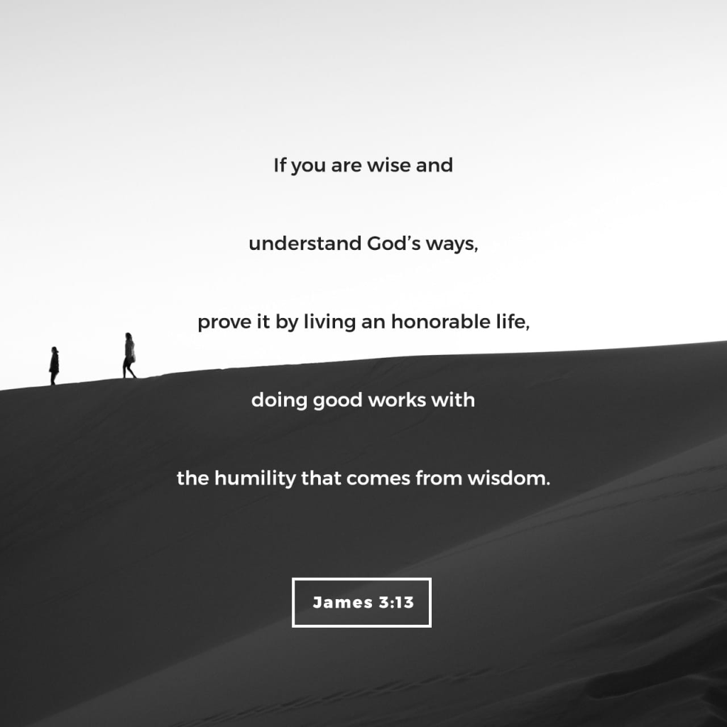 “Do you want to be counted wise, to build a reputation for wisdom? Here’s what you do: Live well, live wisely, live humbly. It’s the way you live, not the way you talk, that counts. Mean-spirited ambition isn’t wisdom. Boasting that you are wise isn’t wisdom. Twisting the truth to make yourselves sound wise isn’t wisdom. It’s the furthest thing from wisdom—it’s animal cunning, devilish conniving. Whenever you’re trying to look better than others or get the better of others, things fall apart and everyone ends up at the others’ throats.”