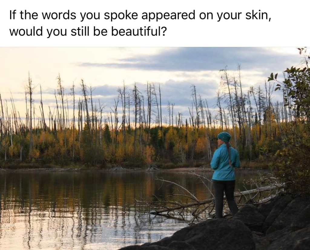 Thank you, Alyssa, for such a thought-provoking question. I sat in my favorite chair, drinking my morning coffee, pondering the question. Would I look beautiful if the words that come out of my mouth were printed on my body, for the whole world to read? Are my words kind and encouraging? Or are they negative and hurtful? That is the question!