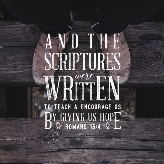 “Such things were written in the Scriptures long ago to teach us. And the Scriptures give us hope and encouragement as we wait patiently for God’s promises to be fulfilled.”