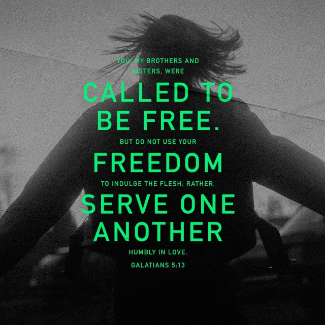 “For you have been called to live in freedom, my brothers and sisters. But don’t use your freedom to satisfy your sinful nature. Instead, use your freedom to serve one another in love.”