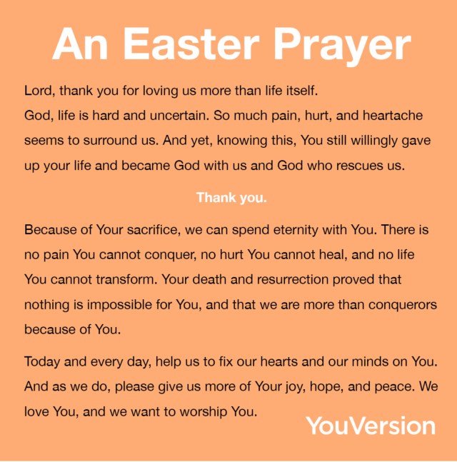 For most of us it may be the first Easter service you have missed.. Remember, God is with you every where you go. When you accepted Christ in your life you became a temple of God. I think this will be a very special Easter to reflect with great gratitude the death and resurrection of Jesus Christ our Savior. God bless you and your family.