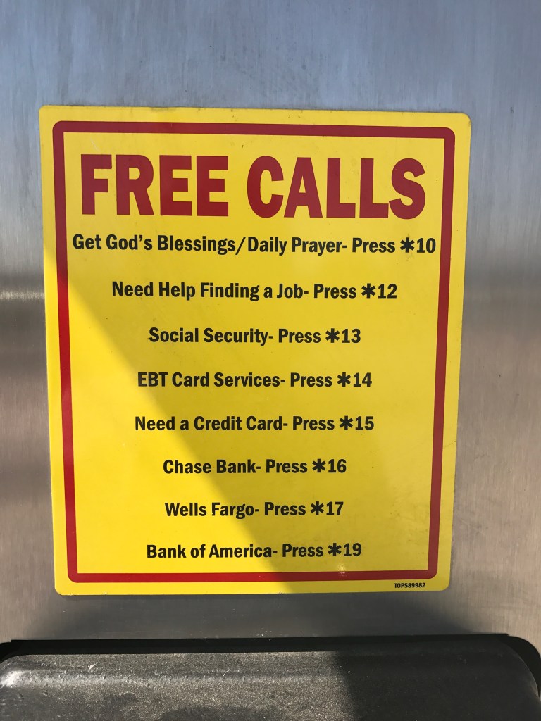 On vacation two years ago we stopped at a rest stop. My husband immediately ran to the men’s room while I headed for the pay phone. I have to admit I grew up with pay phones not cell phones. This was very unusual , since I had not seen one in years. Especially a bright yellow one in the middle of no where. That’s when I saw the sign, Free Calls and right on top was Get Gods Blessings/Daily Prayer press *10. I was glad prayer was at the top of the list. And very thankful that when people were on a lonely desert rode and didn’t know how to pray there is a rest stop you can make a free call for prayer. Friends we know that you don’t need a pay phone to call God. He is with you everyday, just start talking to him use your heavenly connection called prayer.