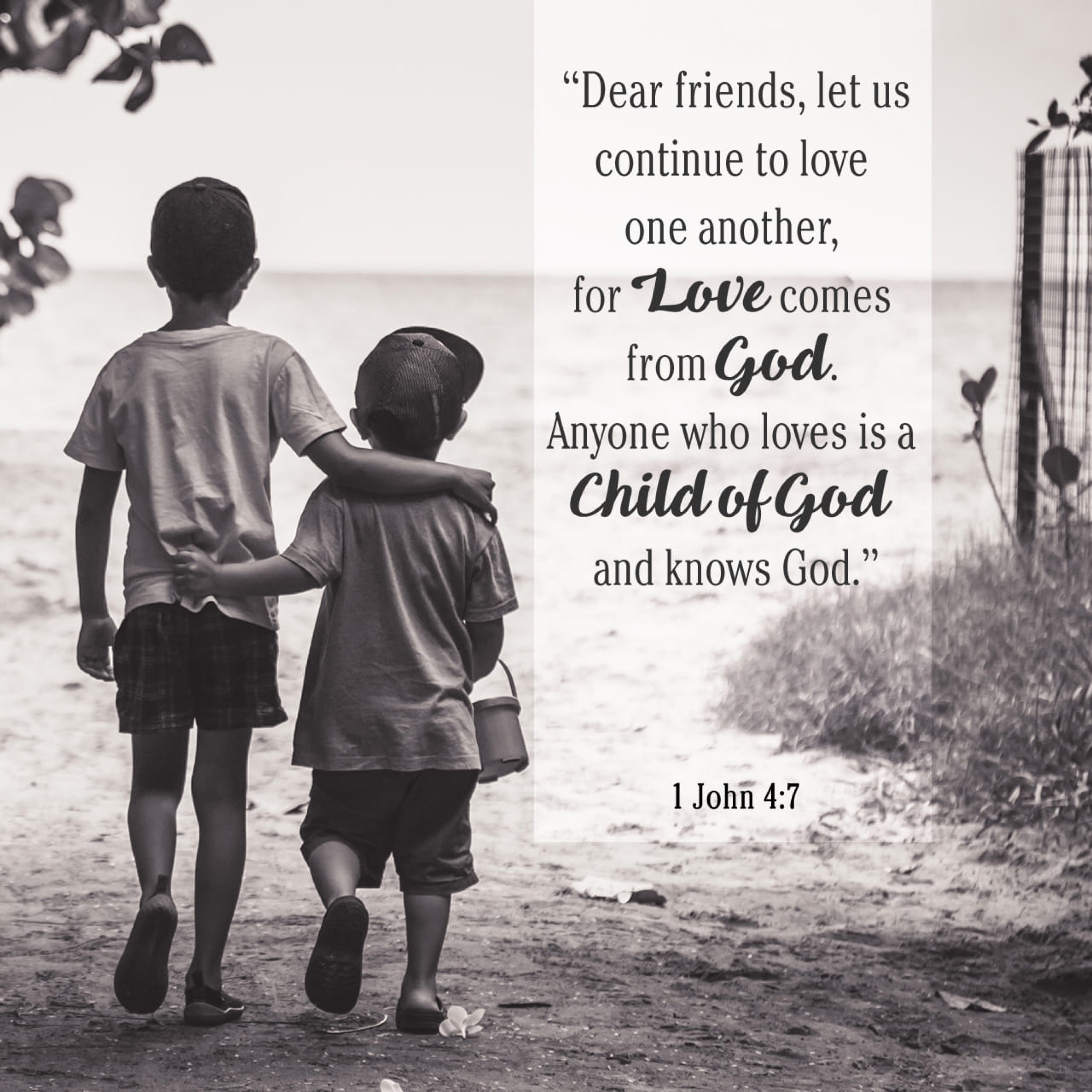 Dear friends, let us love one another, for love comes from God. Everyone who loves has been born of God and knows God. 1 John 4:7 NIV https://1john.bible/1-john-4-7
