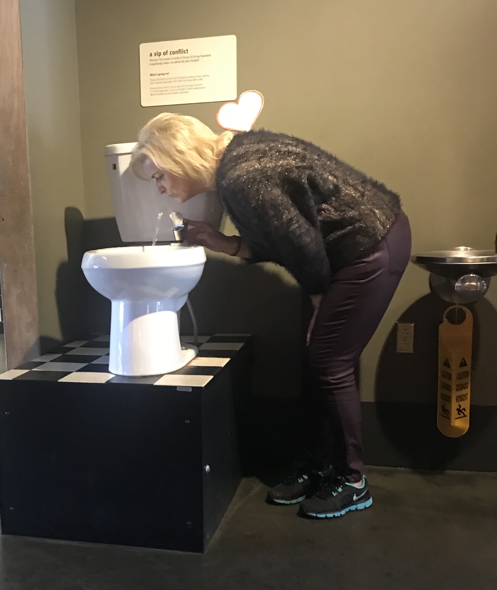 THIRSTY! The water in both of these drinking fountains is perfectly clean. So which do you choose?