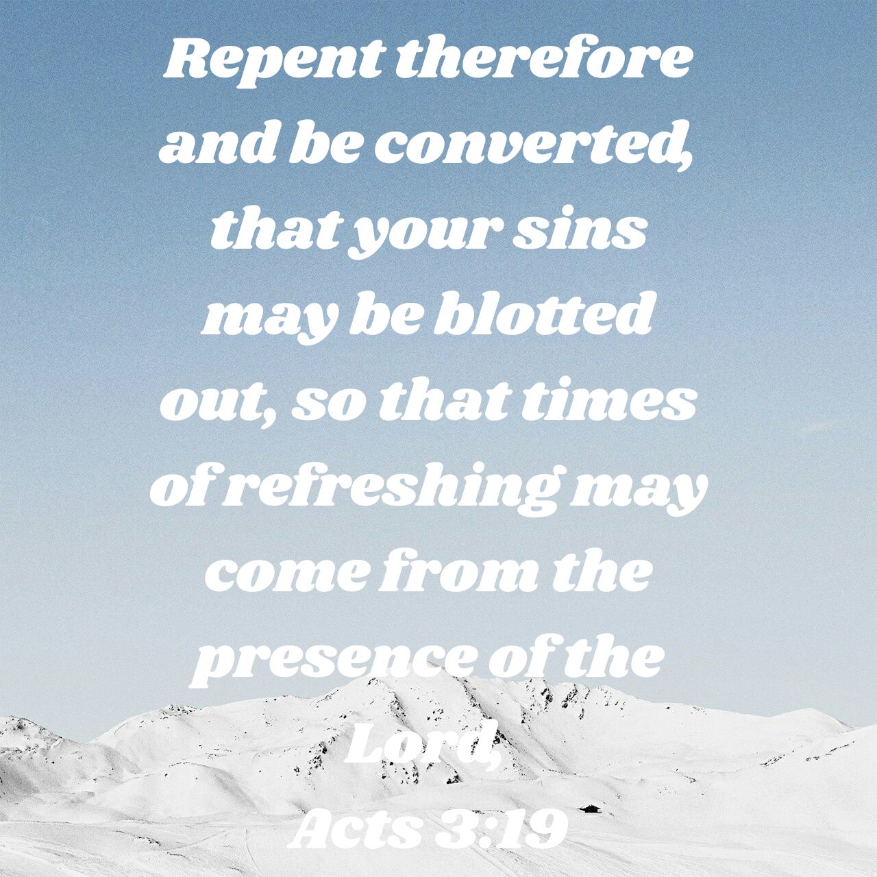 Repent therefore and be converted, that your sins may be blotted out, so that times of refreshing may come from the presence of the Lord,