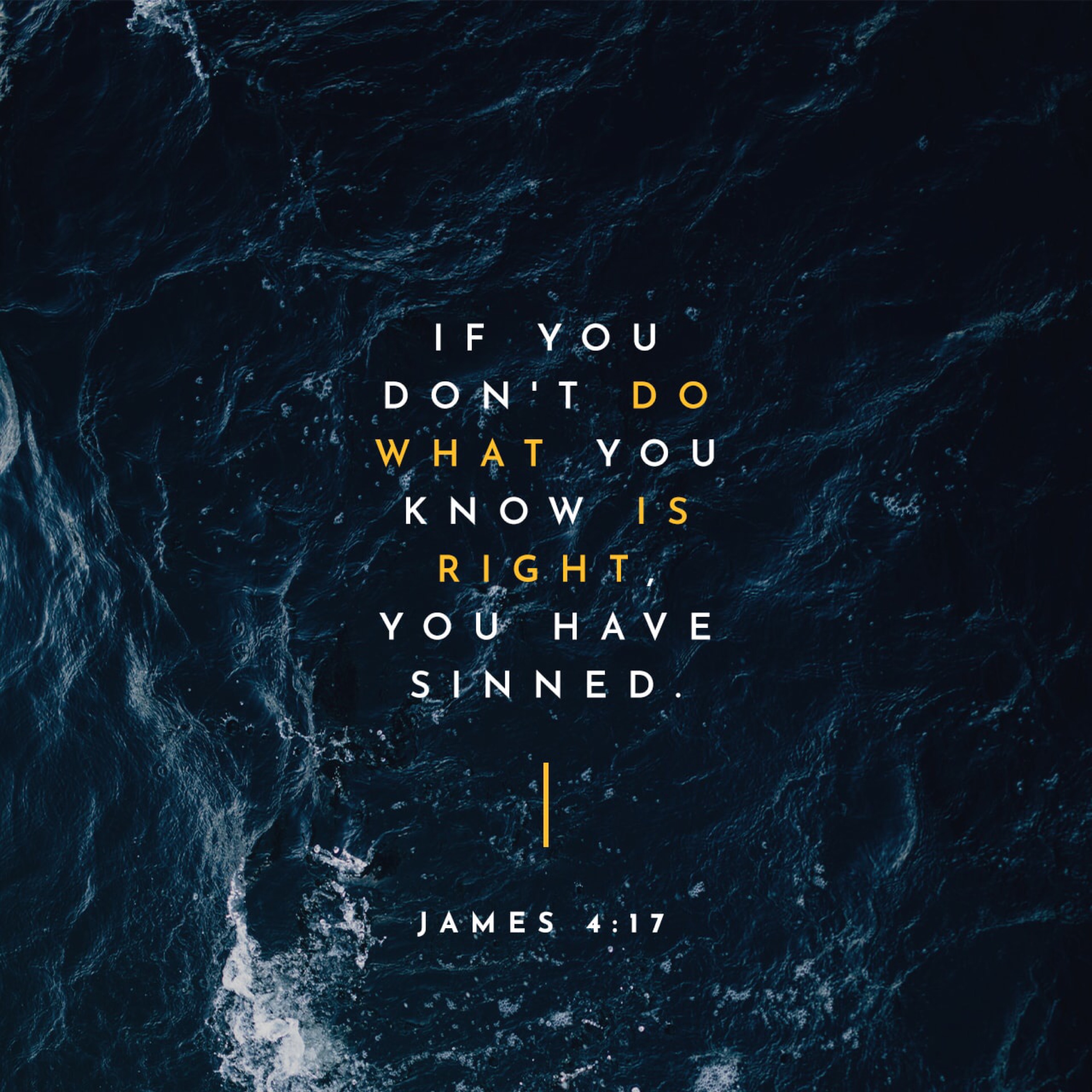 When you know the right thing to do but you choose not to do it, it is sin. Don’t let your selfish nature separate you from God. Pray daily that God will help you overcome temptation. 🙏