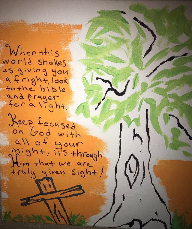 The poem says when we’re all shook up and don’t know what to do, grab your Bible and pray for a light. Yes, That is when we truly have sight. Jesus is the light of the world that lights up our path.
