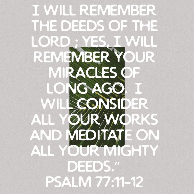 I will remember the deeds of the Lord ; yes, I will remember your miracles of long ago. I will consider all your works and meditate on all your mighty deeds.”