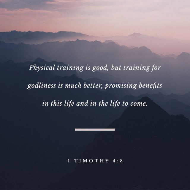 “Do not waste time arguing over godless ideas and old wives’ tales. Instead, train yourself to be godly. “Physical training is good, but training for godliness is much better, promising benefits in this life and in the life to come.” This is a trustworthy saying, and everyone should accept it. This is why we work hard and continue to struggle, for our hope is in the living God, who is the Savior of all people and particularly of all believers.”
