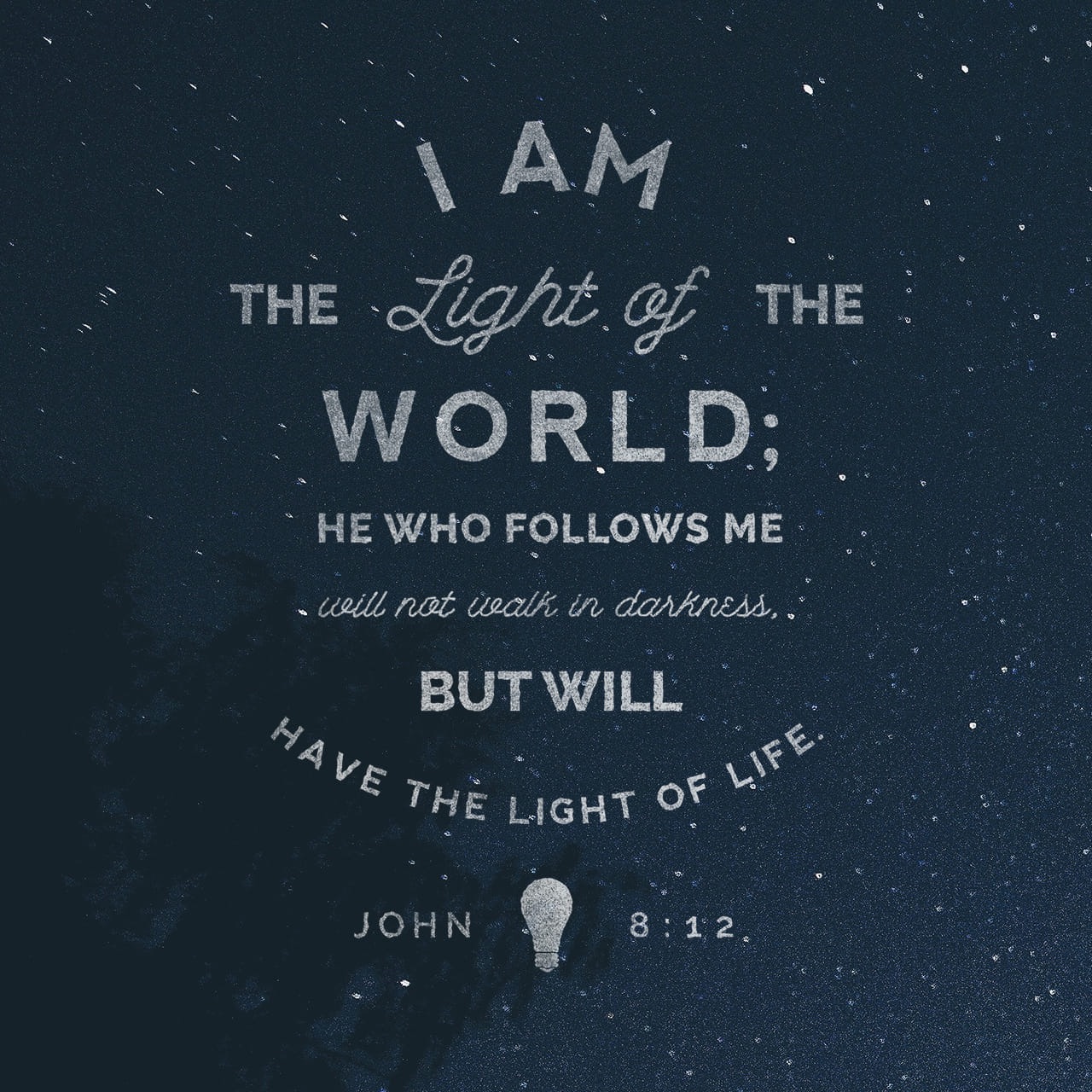 “Jesus spoke to the people once more and said, “I am the light of the world. If you follow me, you won’t have to walk in darkness, because you will have the light that leads to life.””