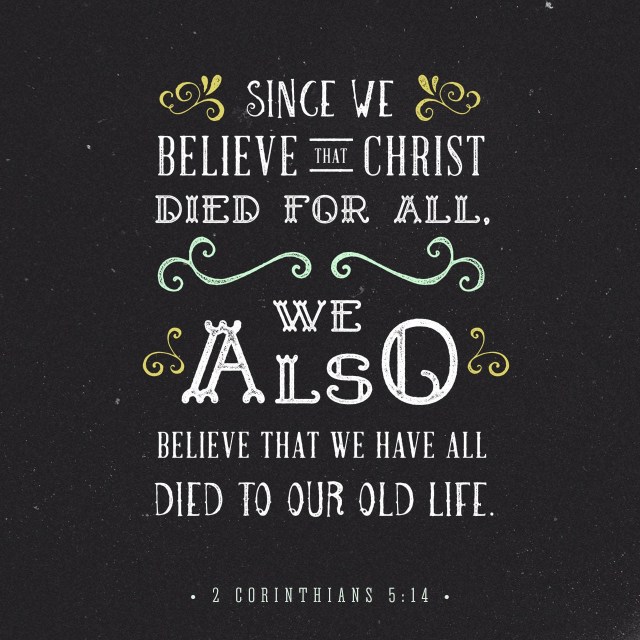 “If it seems we are crazy, it is to bring glory to God. And if we are in our right minds, it is for your benefit. Either way, Christ’s love controls us. Since we believe that Christ died for all, we also believe that we have all died to our old life. He died for everyone so that those who receive his new life will no longer live for themselves. Instead, they will live for Christ, who died and was raised for them.”