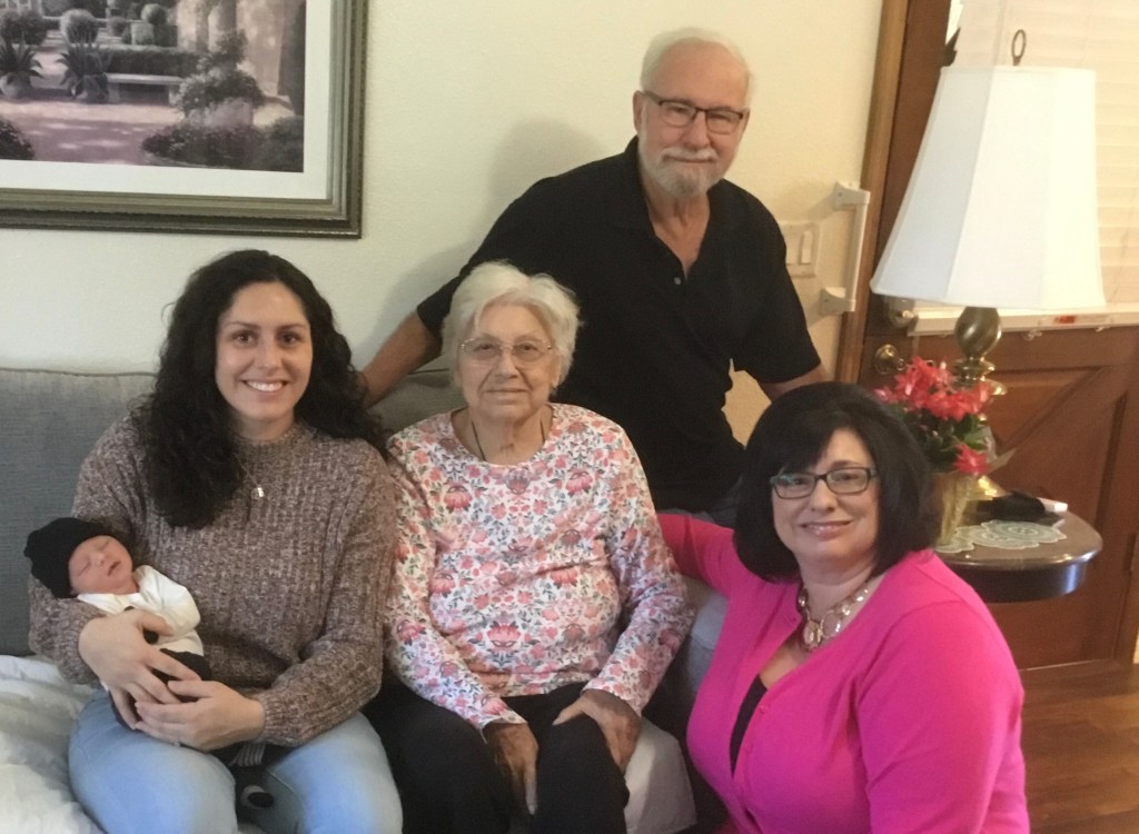My husband’s Mom is 92 and has been blessed to have five generations! Her son, granddaughter, great granddaughter and great great grandson.