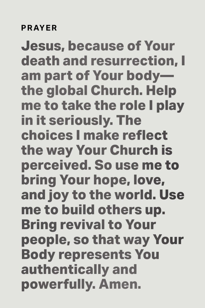 “The eye cannot say to the hand, “I don’t need you!” And the head cannot say to the feet, “I don’t need you!” On the contrary, those parts of the body that seem to be weaker are indispensable, and the parts that we think are less honorable we treat with special honor. And the parts that are unpresentable are treated with special modesty, while our presentable parts need no special treatment. But God has put the body together, giving greater honor to the parts that lacked it, so that there should be no division in the body, but that its parts should have equal concern for each other. If one part suffers, every part suffers with it; if one part is honored, every part rejoices with it. Now you are the body of Christ, and each one of you is a part of it.”